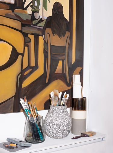 Essie J.N. (Eszter Nagy) is a multidisciplinary artist who was born in Budapest in 1993, where she currently lives and works. As an artist, her goal is to create engaging experiences that invite viewers to explore the intricate relationship between human experiences and artistic expression. For the past few years, she has concentrated on painting and drawing while also working in analog photography. She uses photography as a visual diary, enhancing her ability to observe and capture significant moments. Her paintings often draw inspiration from these photographs, allowing her to transform them from a documentary style into works that evoke emotion and reflect processed memories. Through her artistic journey, she aspires to create opportunities for dialogue and reflection within the viewer, allowing each individual to find their own meaning in the art.